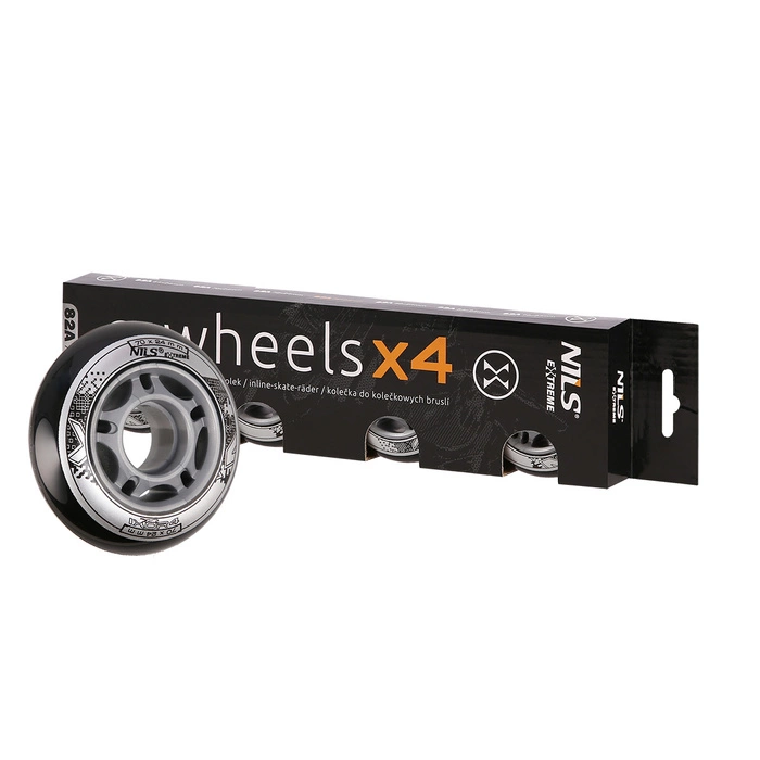 PU 82A KÓŁKA (4 szt.) NILS EXTREME to niezwykle stylowe i nowoczesne kółka do rolek. Przydadzą się każdemu, kto lubi jeździć rekreacyjnie, czy wyczynowo na rolkach. Wykonane zostały z bardzo solidnego, wytrzymałego materiału, jakim jest poliuretan (PU). Przy zakupie kółek do rolek warto zwracać uwagę na twardość i rozmiar (średnicę), gdyż są to najważniejsze parametry decydujące o komforcie jazdy. Oczywiście nie ma idealnych kółek dla każdego. W kwestii twardości - została ona tak dobrana, aby PU 82A NILS EXTREME cechowały się bardzo dobrą przyczepnością do podłoża. Wymiary natomiast można dobrać indywidualnie, gdyż sprzedawane kółka występują w następujących konfiguracjach: 64x24, 70x24, 72x24, 76x24, 80x24, 84x24, 90x24 mm. W tym miejscu warto zaznaczyć, iż kółka o dużej średnicy pozwalają uzyskać większą prędkość, natomiast te o małej średnicy - mniejszą szybkość, ale większą zwrotność. PU 82A NILS EXTREME występują w kolorach: białe, czarne i przezroczyste.