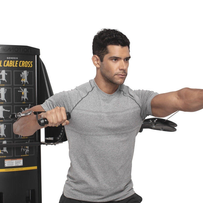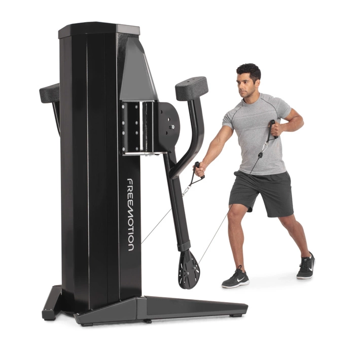 Ramiona maszyny można regulować zarówno w pionie, jak i poziomie, co pozwala na precyzyjne ustawienie uchwytów w zależności od wzrostu i rodzaju ćwiczenia. Dzięki temu użytkownik może odwzorować niemal każdy ruch – od podstawowych wzorców funkcjonalnych po zaawansowane ćwiczenia sportowe. Niezależnie od poziomu sprawności, maszyna umożliwia idealne dopasowanie do potrzeb treningowych. To sprzęt stworzony z myślą o różnorodności ruchu i maksymalnej efektywności ćwiczeń.