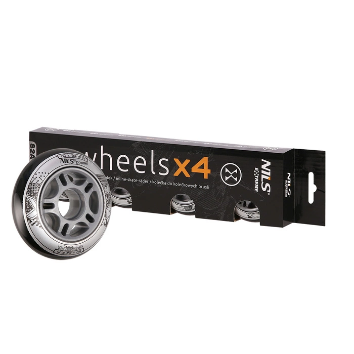 PU 82A KÓŁKA (4 szt.) NILS EXTREME to niezwykle stylowe i nowoczesne kółka do rolek. Przydadzą się każdemu, kto lubi jeździć rekreacyjnie, czy wyczynowo na rolkach. Wykonane zostały z bardzo solidnego, wytrzymałego materiału, jakim jest poliuretan (PU). Przy zakupie kółek do rolek warto zwracać uwagę na twardość i rozmiar (średnicę), gdyż są to najważniejsze parametry decydujące o komforcie jazdy. Oczywiście nie ma idealnych kółek dla każdego. W kwestii twardości - została ona tak dobrana, aby PU 82A NILS EXTREME cechowały się bardzo dobrą przyczepnością do podłoża. Wymiary natomiast można dobrać indywidualnie, gdyż sprzedawane kółka występują w następujących konfiguracjach: 64x24, 70x24, 72x24, 76x24, 80x24, 84x24, 90x24 mm. W tym miejscu warto zaznaczyć, iż kółka o dużej średnicy pozwalają uzyskać większą prędkość, natomiast te o małej średnicy - mniejszą szybkość, ale większą zwrotność. PU 82A NILS EXTREME występują w kolorach: białe, czarne i przezroczyste.
