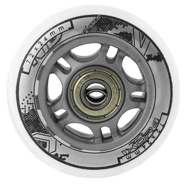 PU 72x24 82A BIAŁE (4 szt.) + ABEC-7 (8 szt.) to zestaw 4 kółek i 8 łożysk marki Nils Extreme. Kółka występują w rozmiarach 64x24, 70x24, 72x24, 76x24, 80x24. Są dostępne w dwóch wersjach kolorystycznych: białej i przezroczystej.