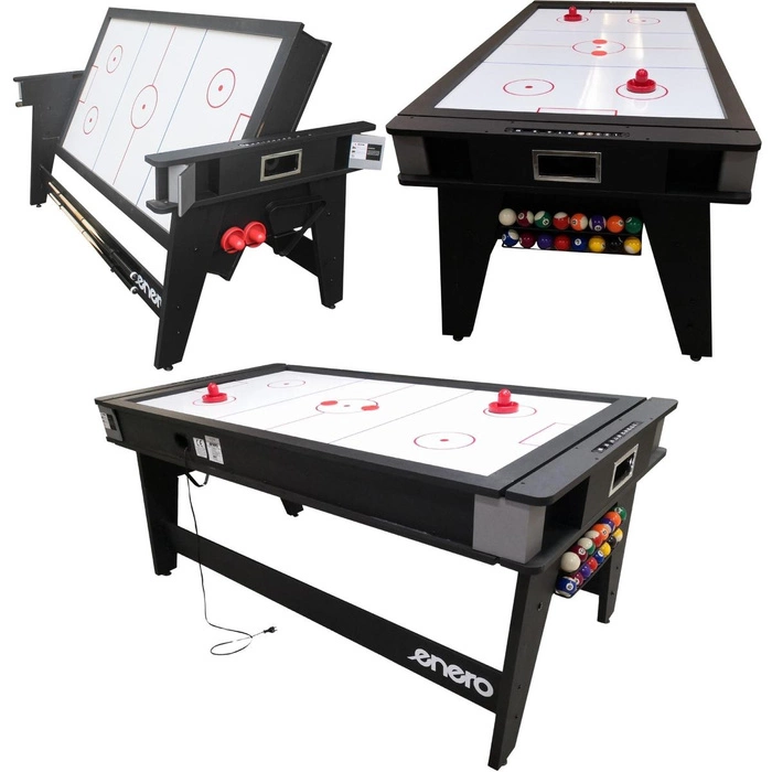 Bo zamiast czterech oddzielnych sprzętów, które zajmują miejsce, masz jeden sprytny stół, który spełnia różne role. Bilard, tenis stołowy, cymbergaj i stół jadalny – wszystko w jednym, kompaktowym zestawie. Zero nudy, maksimum zabawy i funkcji.