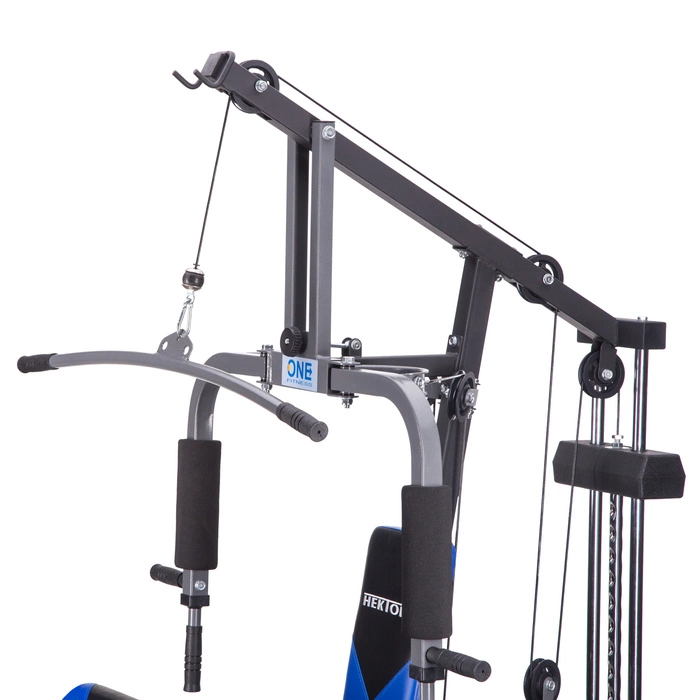 Atlas Hektor 3 100 LBS (45 KG) to wysokiej klasy wielofunkcyjny przyrząd do ćwiczeń, umożliwiający pracę nad wszystkim partiami mięśni. Cała siłownia w jednym urządzeniu, które wykonano z trwałych materiałów, a wszystkie uchwyty zabezpieczono gąbkami. W ramach zestawu znajdziemy: wyciąg górny i dolny, modlitewnik, prasę do nóg czy elementy do wyciskania na siedząco. Siedzenie oraz oparcia wykonano ze imitującego skórę materiału, niepochłaniającego wilgoci i łatwego w czyszczeniu. Zestaw waży 82 kg, a waga stosu obciążenia to 45 kg.