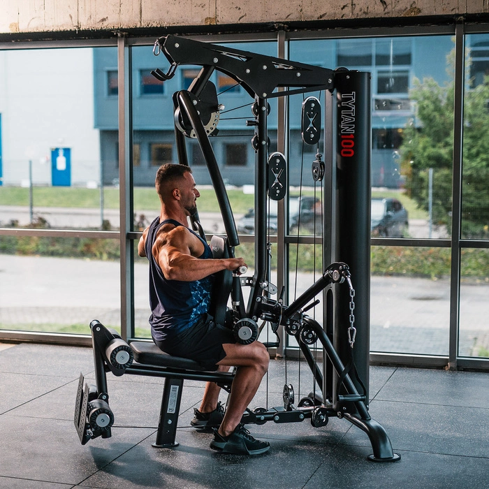 Dzięki temu TYTAN 100 sprawdzi się jako atlas wielofunkcyjny do komercyjnego klubu fitness, który zastępuje kilka pojedynczych maszyn i pozwala realizować kompletny plan treningowy bez zmiany stanowiska.