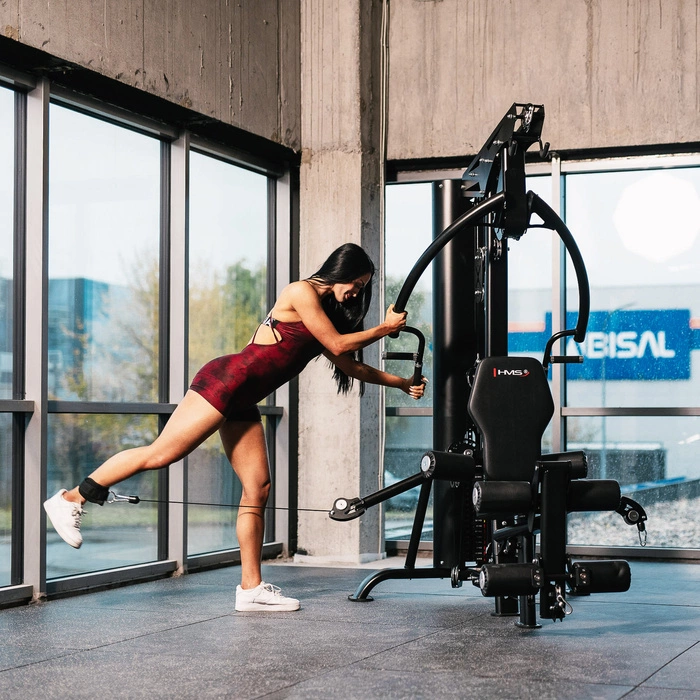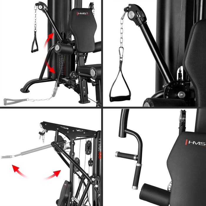 Wielofunkcyjność – wyciąg górny i dolny, ramiona do rozpiętek i wyciskania, stanowisko do wyprostów nóg.