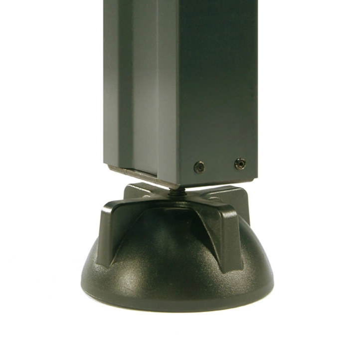 Duże, szerokie nogi stołu ze stopkami poziomującymi pozwalają na wyregulowanie wysokości do idealnego poziomu.