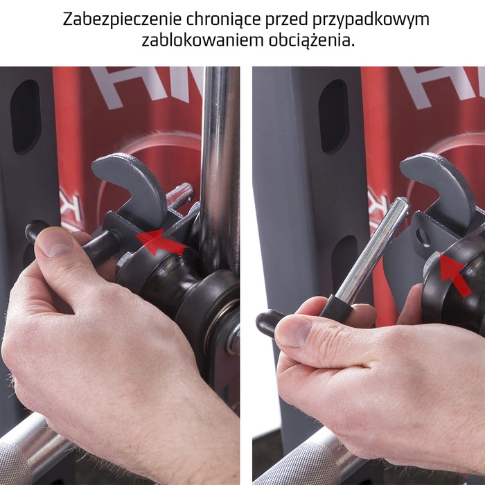 Jednym z kluczowych atutów suwnicy HMS CYKLOP 2 jest jej niezwykle solidna, ważąca niemal 390 kg konstrukcja, która zapewnia pełną stabilność podczas najbardziej intensywnych ćwiczeń. Wysokiej klasy liniowe łożyska gwarantują płynną i cichą pracę nawet przy dużych obciążeniach, co przekłada się na komfort oraz bezpieczeństwo użytkownika.