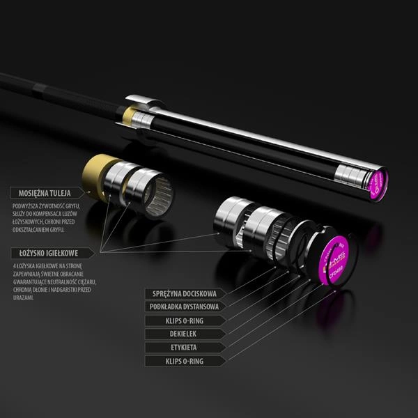 Jedną z najważniejszych cech gryfu GCFD450 jest jego imponująca nośność – aż do 450 kg. Dzięki temu nadaje się on zarówno do codziennych treningów, jak i zaawansowanych sesji z dużymi obciążeniami. Osiem precyzyjnych łożysk igiełkowych umożliwia płynny obrót części na obciążenia, co minimalizuje ryzyko kontuzji nadgarstków i poprawia komfort podczas dynamicznych ćwiczeń. Przykładowo, podczas podnoszenia ciężarów olimpijskich lub wykonywania rwania, płynność obrotu pozwala na naturalny ruch gryfu, co jest niezwykle istotne dla techniki oraz bezpieczeństwa.