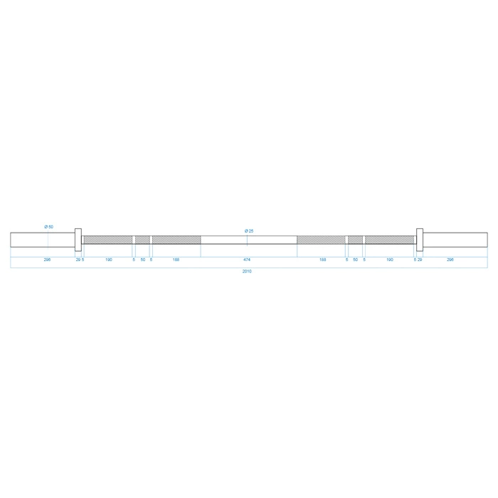 Długość całkowita gryfu wynosząca 201 cm oraz średnica części na obciążenia 50 mm sprawiają, że pasuje on do większości standardowych talerzy olimpijskich. Długość części przeznaczonej na obciążenia to 325 mm, co pozwala na swobodne dopasowanie odpowiedniej liczby talerzy do własnych potrzeb treningowych. Gryf doskonale sprawdzi się zarówno podczas ćwiczeń siłowych, jak i treningów funkcjonalnych, będąc nieodzownym elementem wyposażenia każdej siłowni. Przykładem zastosowania może być trening FBW (Full Body Workout), gdzie gryf wykorzystasz do ćwiczeń na wszystkie partie mięśniowe lub specjalistyczny trening crossfit z dynamicznymi zmianami obciążenia.