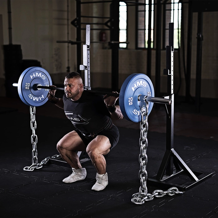Jedną z kluczowych zalet łańcuchów HMS GR50 jest możliwość dynamicznej zmiany obciążenia podczas ruchu. Każdy z łańcuchów waży 25 kg, co pozwala na precyzyjne dopasowanie poziomu trudności do własnych potrzeb. Podczas podnoszenia sztangi ciężar stopniowo wzrasta, co doskonale stymuluje mięśnie do wzmożonej pracy. Z kolei przy opuszczaniu sztangi obciążenie maleje, co pozwala na bezpieczne zakończenie ruchu i minimalizuje ryzyko kontuzji. Takie rozwiązanie sprawdza się nie tylko w klasycznych ćwiczeniach kulturystycznych, ale także w treningach funkcjonalnych czy przygotowaniu motorycznym sportowców. Przykładowo, łańcuchy można wykorzystać podczas martwego ciągu, wyciskania leżąc lub przysiadów, aby lepiej zaangażować mięśnie stabilizujące i poprawić siłę eksplozywną.