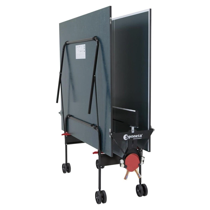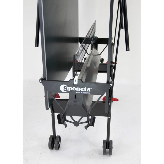 SPONETA to solidna, niemiecka firma, która kojarzy się z najwyższą jakością. Ten produkt pochodzi z linii dla hobbystów, idealnej do zastosowań rekreacyjnych w pomieszczeniach zadaszonych. Stół do tenisa stołowego SPONETA S1-12i jest długi na 274 i szeroki na 152.5 cm. Wysokość 76 cm sprawia, że wygodnie mogą grać przy nim również dzieci. Kolejnym plusem tego produktu jest lekkość. Przy wadze poniżej 70 kg i nóżkach zakończonych kółkami z łatwością można go przenosić i przestawiać, zarówno po rozłożeniu, jak i przed nim. Koła umożliwiają również skręcanie, co dodatkowo ułatwia przestawienie stołu w dowolne miejsce. Blokada uniemożliwia przesuwanie się stołu podczas zabawy.