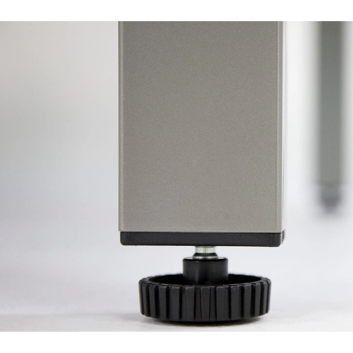 Omawiany stół do tenisa stołowego jest ruchomy, a to dlatego że jest wyposażony w 4 skrętne kółka z bieżnikiem gumowym o średnicy 100 mm,2 z tych kółek posiadają blokadę. Aby stół podczas gry miał zagwarantowaną równowagę, jest on wyposażony w regulację nóżek. Stelaż  wykonany z aluminium, jest w kolorze szarym. Stół jest wyposażony w prosty i automatyczny mechanizm blokujący, a w zestawie znajduje się oprócz oczywiście stołu, także czarna siatka i instrukcja montażu.