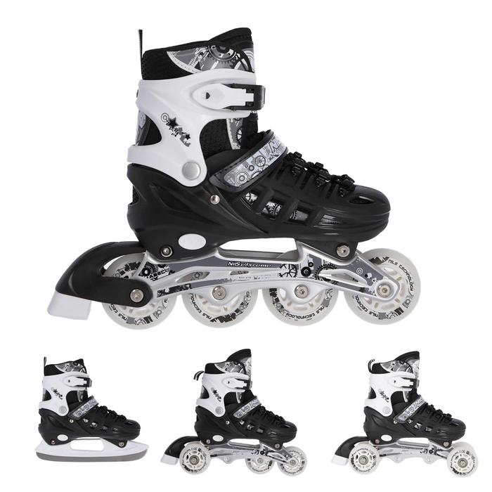 Łyżworolki z wym. płozą hokejową NH10905 4w1 led to wyjątkowy sprzęt, który można skonfigurować jako łyżworolki, łyżwy, wrotki oraz rolko-wrotki.