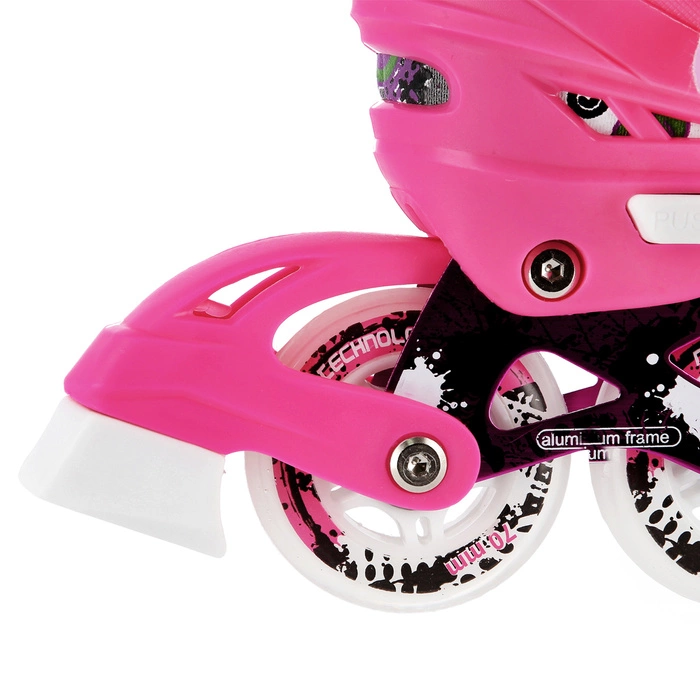 NH18122 4w1 RÓŻOWE ROZM. L(39-43) ŁYŻWOROLKI Z WYM. PŁOZĄ HOKEJOWĄ NILS EXTREME to doskonały sprzęt na każdą porę roku. "4w1" oznacza, że odpowiednio zmieniając ułożenie kółek można uzyskać klasyczne wrotki, "trójkołowe rolki", czyli coś pomiędzy rolkami a wrotkami... i wreszcie tradycyjne rolki. To wszystko sprawia, że dziecko może przejść przez wszystkie etapy nauki jazdy - od wrotek po rolki. W zestawie dołączona jest również specjalna płoza hokejowa. Dzięki temu sprzętu nie trzeba odkładać na zimę. Wystarczy bowiem zamontować wspomniany element, aby otrzymać łyżwy i cieszyć się z nich na lodowiskach. Bardzo ważny jest również fakt, że rozmiar buta jest regulowany. W rozmiarze L może on być dostosowany do nogi w rozmiarze od 39 do 43.