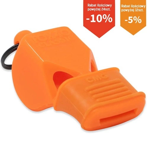 Gwizdek Fox 40 CMG Safety Classic posiada ustnik z tworzywa termoplastycznego co powoduje, że łatwiej go utrzymać w ustach i jest bezpieczniejszy dla sędziego. Wydaje charakterystyczny dźwięk, który jest dobrze słyszalny podczas spotkania sportowego z udziałem dużej ilości kibiców. Maksymalna głośność dźwięku wynosi 115 decybeli. Dzięki bezkulkowej budowie można być pewnym, że gwizdek nie ulegnie awarii w najmniej oczekiwanym momencie i będzie doskonale spełniał swoją rolę. Gwizdek może być użytkowany podczas meczów sportowych różnych dyscyplin sportu, a także podczas treningów i innych zajęć związanych z aktywnością fizyczną. Przedmiot jest lekki i mały, dzięki czemu bez trudu można go schować w kieszeni, posiada również specjalny sznurek dołączony do zestawu, który zapobiega zgubieniu.