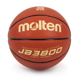 Piłka do koszykówki Molten B5C3800-L to wysokiej jakości produkt oferowany przez renomowanego producenta przeznaczony dla wszystkich miłośników koszykówki. Sprzęt znakomicie sprawdzi się podczas treningów i gier na hali. Zastosowanie wysokiej jakości materiałów sprawia, że piłka może być wykorzystywana przez zaawansowanych graczy. Zgodnie z zaleceniami producenta ten model jest dedykowany dla kategorii wiekowej U10. Do wytworzenia piłki użyto nowoczesnej skóry kompozytowej, która jest trwała i dobrze przylega do dłoni. Dodatkowym elementem zwiększającym przyczepność są specjalne wypustki umieszczone na powierzchni. Piłka o klasycznym wyglądzie zbudowana została z 12 paneli zgrzewanych termicznie. W jej wnętrzu znajduje się butylowy pęcherz odpowiedzialny za utrzymywanie odpowiedniego ciśnienia i chroniący przed odkształcaniem. Piłka w rozmiarze 5 ma wagę około 400 g. Zastosowanie pomarańczowego koloru i czarnych przetłoczeń pomiędzy poszczególnymi panelami sprawia, że model ma atrakcyjny, klasyczny wygląd.