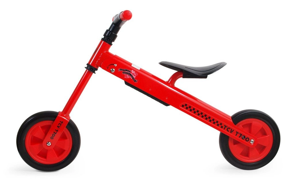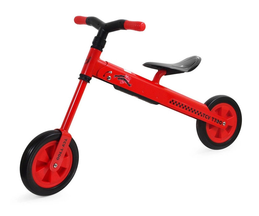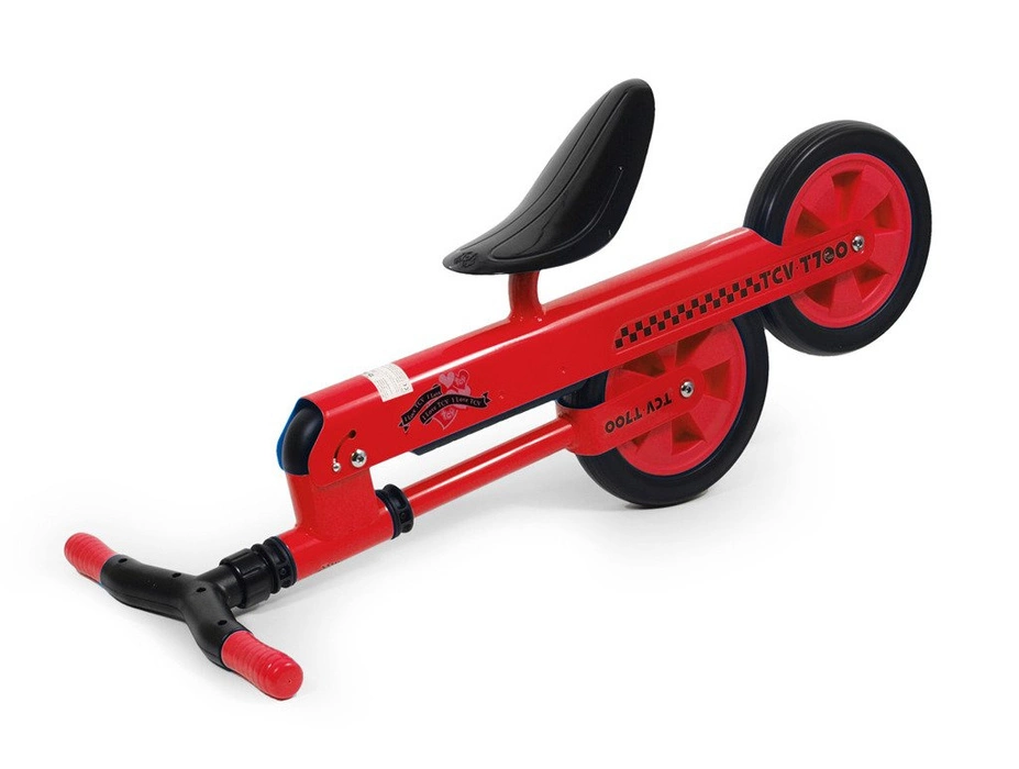 Składany rowerek biegowy TCV-T700 czerwony, dostępny jest również w kolorach: zielonym, niebieskim i żółtym. Dedykowany jest dzieciom od 2 roku życia do jazdy na zewnątrz, jak i w domu. Wszystko za sprawą lekkich, piankowych kółek, które minimalizują hałas i zabezpieczają podłoże przed uszkodzeniem, jednocześnie gwarantując bezpieczne użytkowanie. Średnica koła wynosi 21 cm.