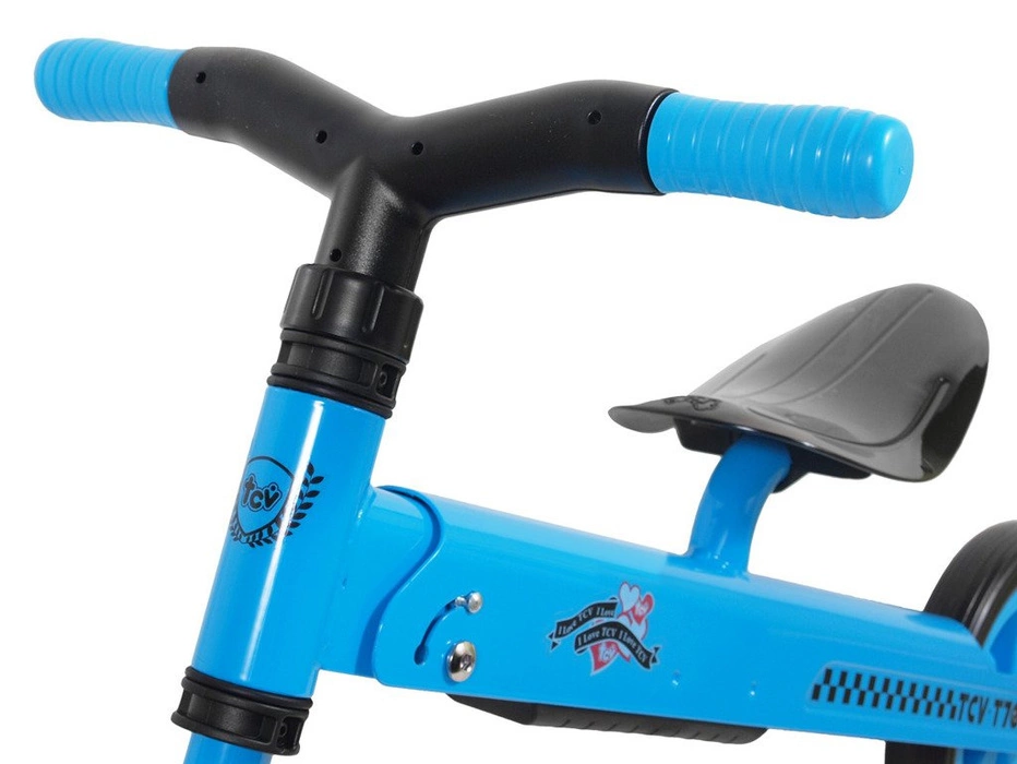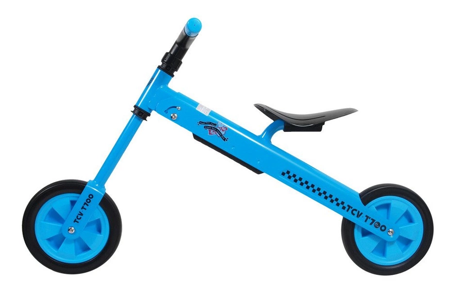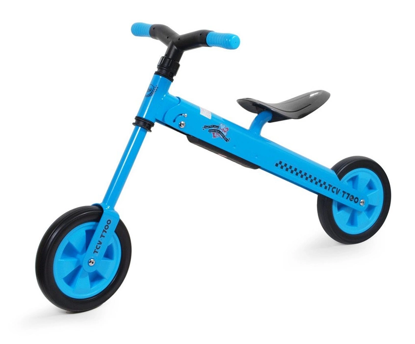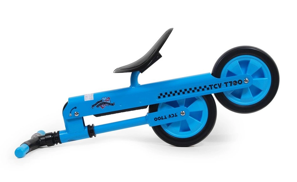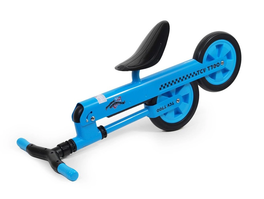 Składany rowerek biegowy TCV-T700 niebieski, dostępny jest również w kolorach: zielonym, żółtym i czerwonym. Dedykowany jest dzieciom od 2 roku życia do jazdy na zewnątrz, jak i w domu. Wszystko za sprawą lekkich, piankowych kółek, które minimalizują hałas i zabezpieczają podłoże przed uszkodzeniem, jednocześnie gwarantując bezpieczne użytkowanie. Średnica koła wynosi 21 cm.
