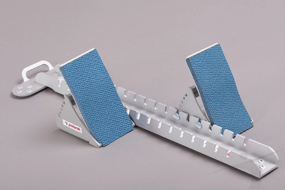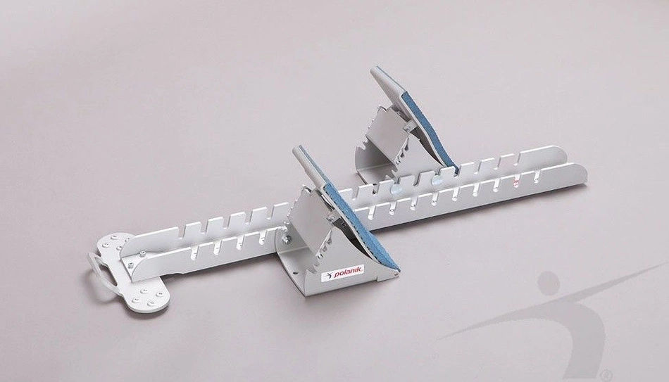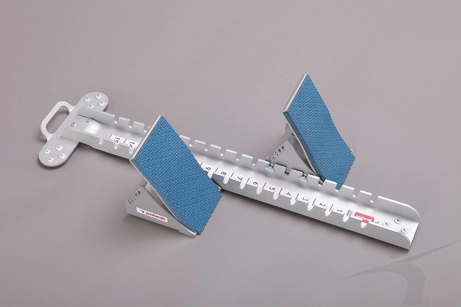 Polanik PBS15-02-W to profesjonalny, certyfikowany przez IAAF blok startowy przeznaczony do organizacji treningów oraz oficjalnych zawodów lekkoatletycznych. Sprzęt charakteryzuje się bardzo lekką, a zarazem wytrzymałą konstrukcją wykonaną z wyciskanego aluminium. Co warte zaznaczenia, każdy egzemplarz jest wyposażony w ergonomicznie zaprojektowane, wysokie, pokryte warstwą tartanu, regulowane w zakresie 5 stopni oparcia na stopy, szynę dającą możliwość ustawienia oparć w 15 pozycjach względem siebie oraz uchwyt ułatwiający przenoszenie opisywanego przez nas sprzętu. Polanik PBS15-02-W jest dedykowany do wykorzystania na klasycznych bieżniach tartanowych (w celu zwiększenia przyczepności do podłoża producent wyposażył swój blok w ostro zakończone kolce umieszczonego na jego dolnej powierzchni).