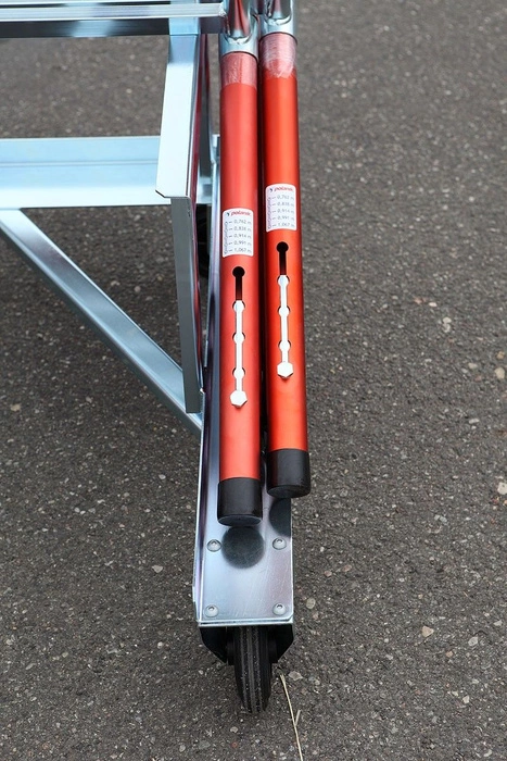 Wózek posiada również solidnej jakości uchwyt stalowy, co daje świetną stabilność, bezpieczeństwo oraz łatwość prowadzenia konstrukcji.