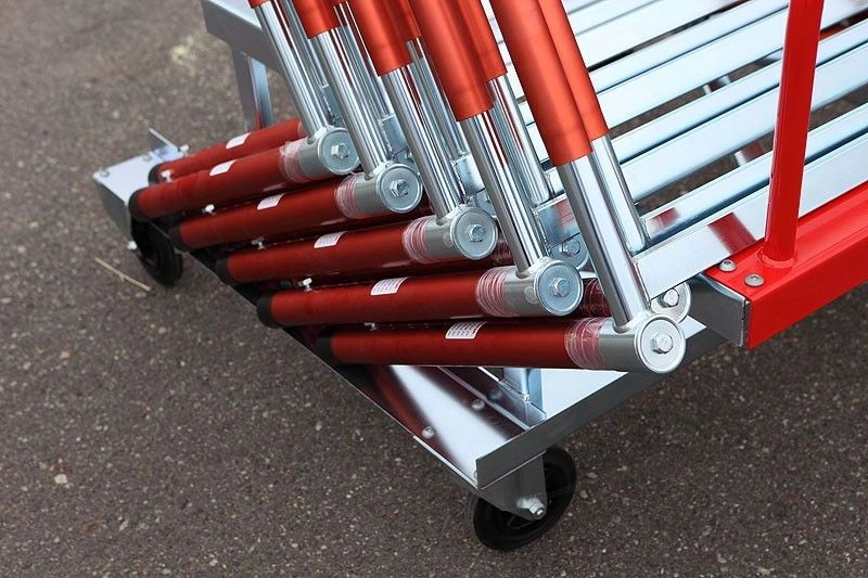 Jedną z największych zalet konstrukcji jest zdecydowanie jej pojemność. Wózek jest w stanie pomieścić minimum 10 płotków wyczynowych (z wyjątkiem serii PP-170) lub treningowych (z wyjątkiem serii PP-180). Porusza się na solidnych, dużych, plastikowych kołach, zapewniających mu bezpieczne, łatwe prowadzenie oraz doskonałą zwrotność na dowolnym podłożu.