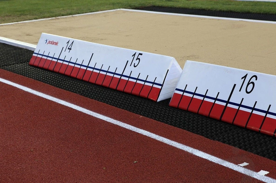 Listwa Polanik LT-S283-T25 do trójskoku, lekka i miękka konstrukcja z pianki umieszczona w pokrowcu z PCW, dwa segmenty łączone ze sobą za pomocą rzepów, duże wyraźne cyfry na białym tle są bardzo dobrze widoczne dla publiczności, skala od 13,5 m do 17,5 m, możliwość zamówienia innych skal