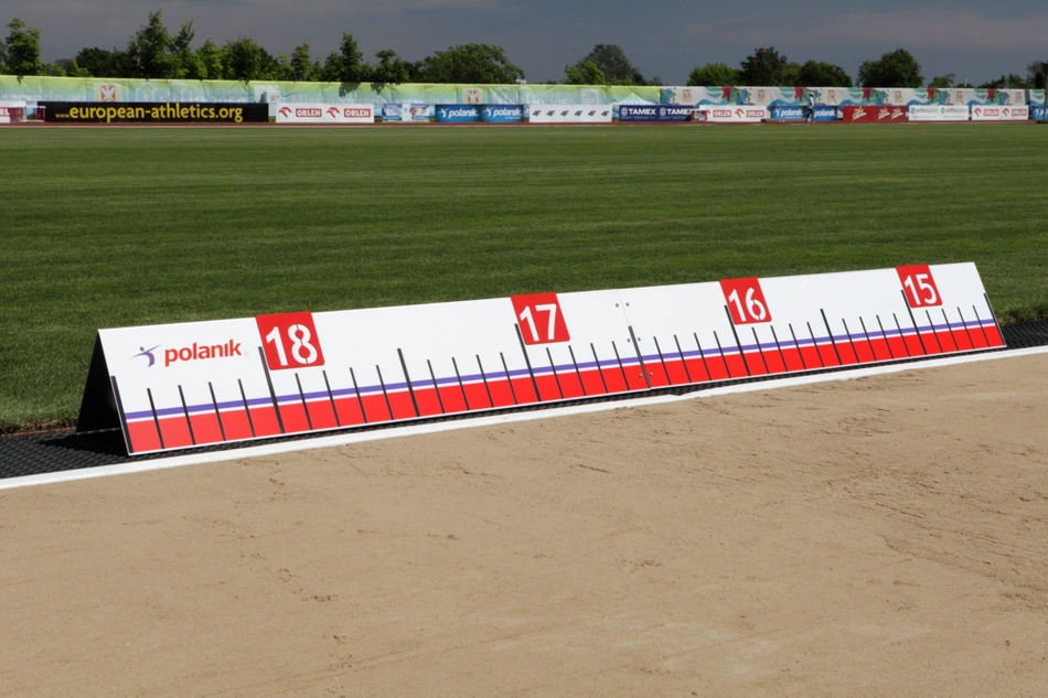 Listwa służy do orientacyjnej ilustracji długości oddanego skoku w konkurencjach skoku w dal i trójskoku. W zestawie dobrze widoczne oznaczenia odległości od 4 do 18, nakładane na listwę.