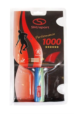 Rakietka model SMJ Sport 1000 przeznaczona jest dla bardziej zaawansowanych graczy. Produkt posiada certyfikat ITTF, świadczący o wysokiej jakości wykonania produktu. Paletka do tenisa stołowego dzięki anatomicznej rączce, świetnie dopasowuje się do dłoni, co zwiększa komfort i przyjemność z gry. Trwała, solidnie wykonana 5-warstwowa deska zapewnia odpowiednią wytrzymałość rakietki i szybkość podczas gry. Zastosowano 2 mm okleinę oraz gumę Superspin z certyfikatem ITTF, która odpowiednio amortyzuje i pozwala na wysokiej jakości techniczne uderzenia.