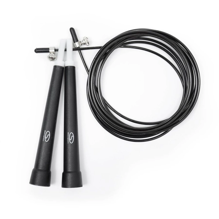 Skakanka Speed Jump JR028 3 metrowa dzięki swojej konstrukcji umożliwia skakanie przy bardzo dużej prędkości. Model posiada wąskie uchwyty o długości 14 cm, które dobrze leżą w dłoni oraz cienką stalową linkę w osłonie silikonowej z możliwością regulacji jej długości (długość linki to 3 metry). Całkowita waga skakanki to zaledwie 110 gram. Solidne wykonanie i niska cena to atuty tego modelu.