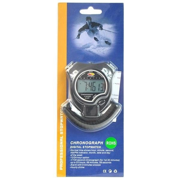 Stoper elektroniczny JS-307 może mierzyć nie tylko minuty czy sekundy, ale także godziny, a nawet wskazuje on dzień tygodnia. Wyświetlanie godziny można dostosować do swoich preferencji - wedle wyboru może to być format 12 lub 24 godzinny. Na tarczy stopera znajduje się także miesiąc i data, dzięki czemu podczas jego użytkowania już nigdy nie zdarzy się, że posiadacz zapomni jaki jest dzisiaj dzień. Ponadto, produkt ten wyposażony został w kalendarza na aż 4 lata! Stoper elektroniczny JS-307 posiada dodatkowo sygnalizację dźwiękową, alarm z linią melodyczną oraz funkcją drzemki. Maksymalny czas odliczania w tym produkcie wynosi 23h 59min 59s. Urządzenie zasilane jest na baterię LR44.