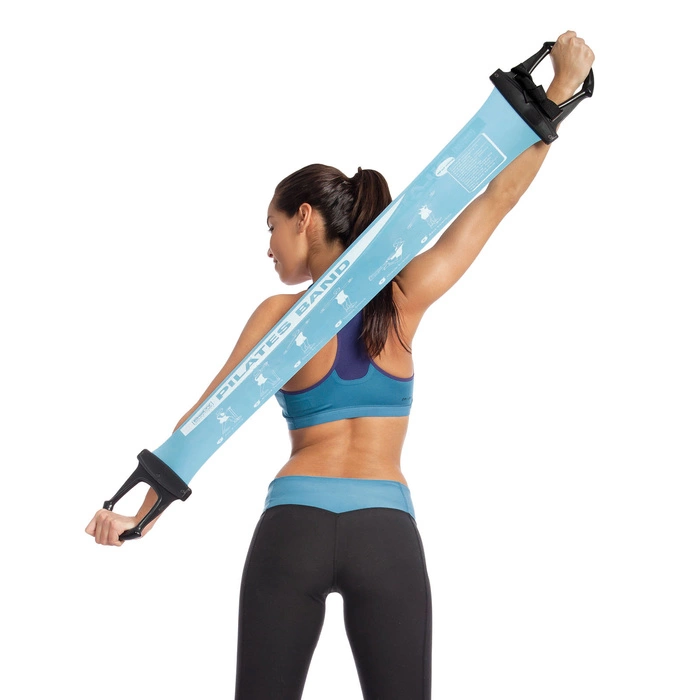 Taśma pilates BB 2350 z uchwytami umożliwia wygodny i efektywny trening siłowy i koordynacyjny. Niebieska taśma z lateksu ma nadrukowane na sobie przykładowe ćwiczenia kształtujące i modelujące różne części ciała. Jeżeli nie masz pomysłu na trening, możesz wykorzystać te podpowiedzi, podzielić na serie i wykonać trening bez wcześniejszego planowania.