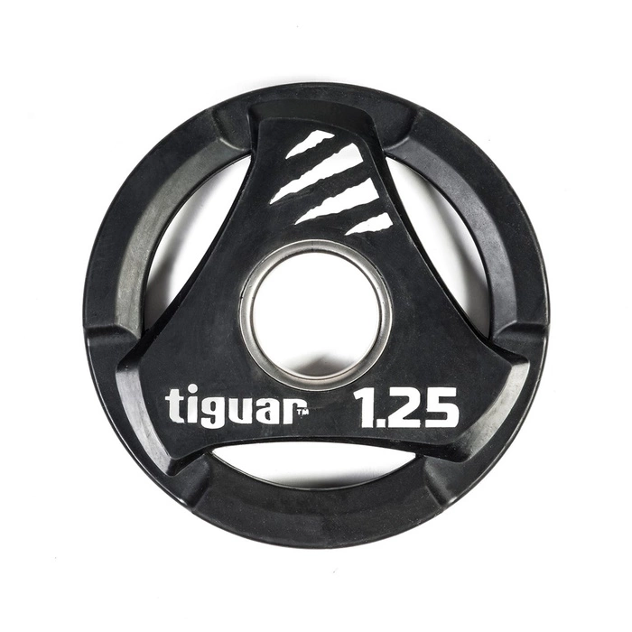 Talerze tiguar PU weight plates to obciążenia, które można nakładać na wszystkie rodzaje  gryfów  klasycznych.  Poliuretanowe  talerze  tiguar  idealnie  sprawdzą  się jako obciążenie  do  maszyn  półwolnych  oraz  przy  wykonywaniu  takich  ćwiczeń jak przysiad ze sztangą, wyciskanie na ławce, wyciskanie na barki. Każdy z talerzy posiada dodatkowo trzy specjalnie wyprofilowane uchwyty, których unikatowy kształt i przemyślane rozmieszczenie pozwala na to, aby komfortowo trzymać je w dłoniach. Rdzeń talerzy pokryty został poliuretanem, dzięki czemu talerze tiguar są niezwykle trwałe i wytrzymałe.